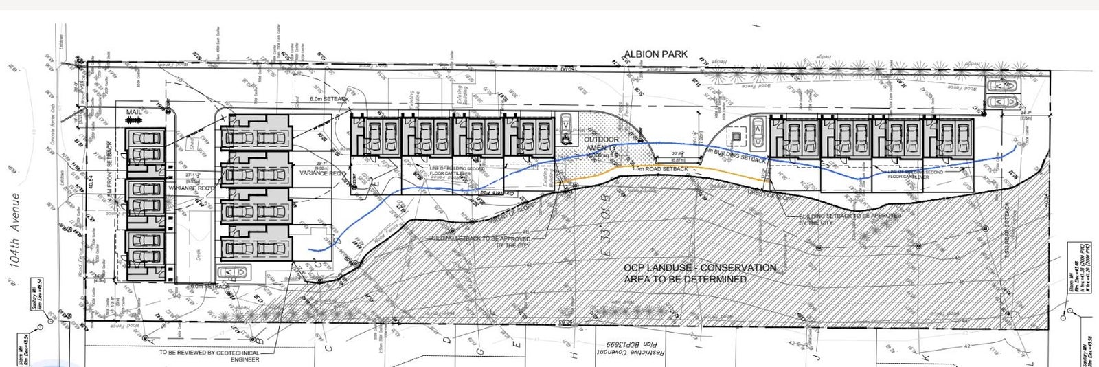 An exceptional opportunity to develop a 21-unit row townhome project in one of Maple Ridge’s fastest-growing neighborhoods. This shovel-ready site is ideally located directly across from cesqunela. Elementary and just steps from Samuel Robertson Technical Secondary, making it perfect for future families. Bordered by Albion Park on the east side, this property offers a peaceful, nature-rich setting with access to green space and recreation. Planned townhomes feature a mix of tandem and double side-by-side garages, with spacious 2 & 3-level floorplans that take full advantage of breathtaking valley views. This is a rare chance to bring a sought-after townhome community to a vibrant, family-friendly neighborhood.Don't miss out on this ready-to-build site with unbeatable location and potential